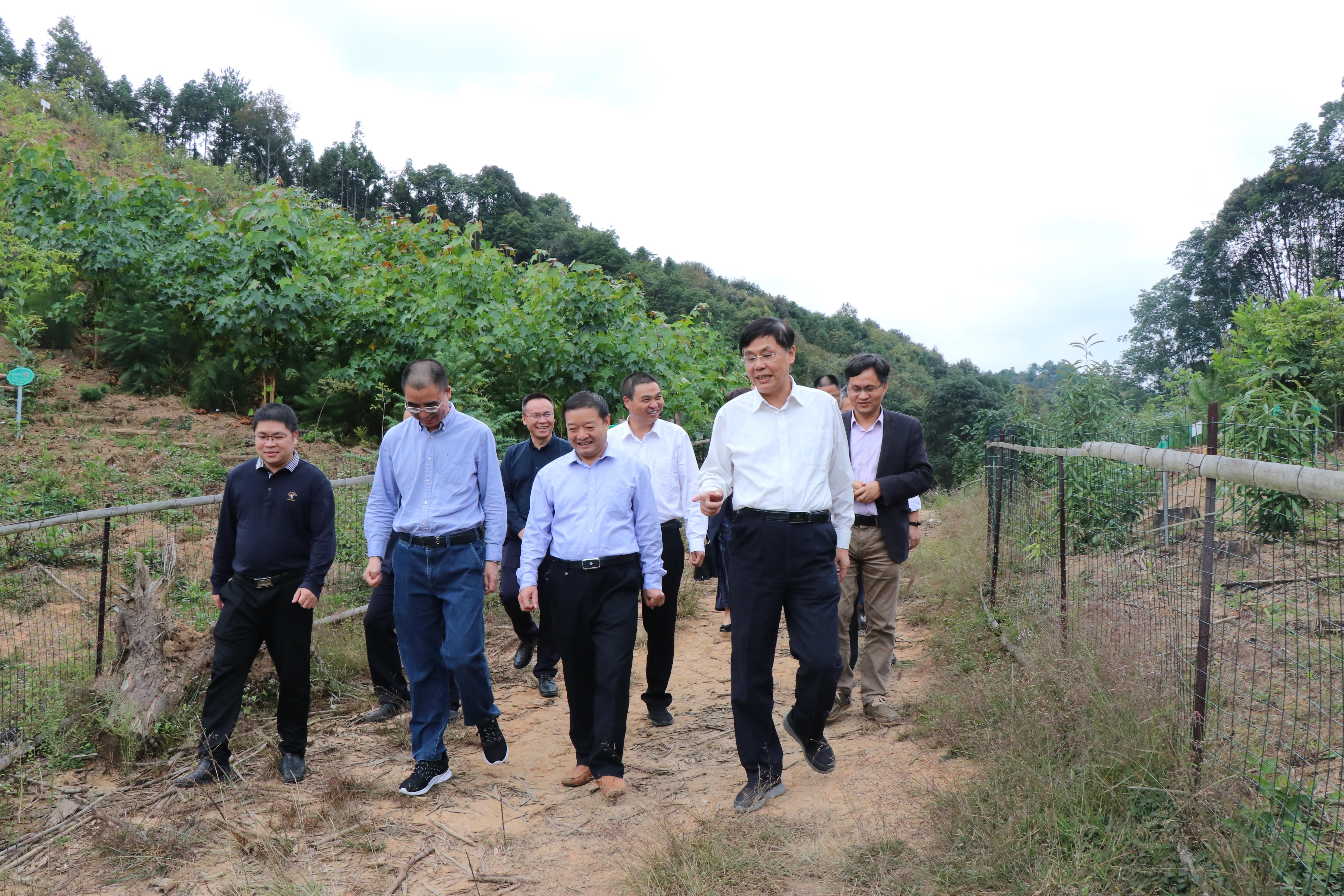 调研组一行深入上杭白砂国有林场,实地调研荣耀体育(中国)建设的“全球气候变化背景下树种多样性、功能特性与生态系统功能实验平台”样地,龙岩市林业局党组书记、局长张田华和上杭县副县长卢家荣等人陪同调研。李宝银一行听取了实验平台负责人黄志群研究员的工作情况介绍,对一年来样地建设的积极成效和可喜变化予以了充分肯定。随后,调研组一行会同龙岩市林业局在白砂国有林场场部召开座谈会。张田华局长简要介绍了福建龙岩现代林业科技示范园区的建设情况,白砂林场邹秉章场长介绍了白砂林场与学校合作共建情况。李宝银在讲话中表示,龙岩市委、市政府高度重视林业工作,将林场科技示范园区建设作为市委市政府关于持续深化集体林权制度改革三年行动计划(2020-2022年)中的重点项目,这对福建师大实验样地和其他相关科研项目建设都起到了积极的推动作用。近年来,龙岩市林业局和白砂林场在人力、物力、财力等方面,对实验样地建设给予了倾力支持,有力促进了实验样地建设与发展,为把样地打造成为国际一流的林业科研创新平台创造了良好条件。学校将继续带着责任和感情,大力践行习近平生态文明思想,充分发挥学校办学优势,依托闽西红色圣地、绿色宝地,在生态文明教育基地、野外观测研究站、科研创新试验中心等方面加强合作,大力支持龙岩市林业事业高质量发展。