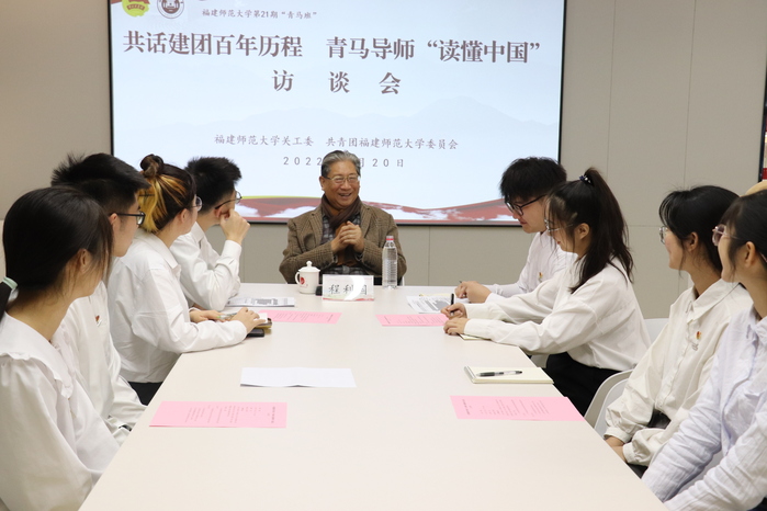 420日下午,“共话建团百年历程青马导师‘读懂中国’”访谈会在旗山校区小葵馆举行。四位青马导师、校关工委陈汤䘵、张志忠、王震声、程利国,校第21期青马班学员代表参加了活动。