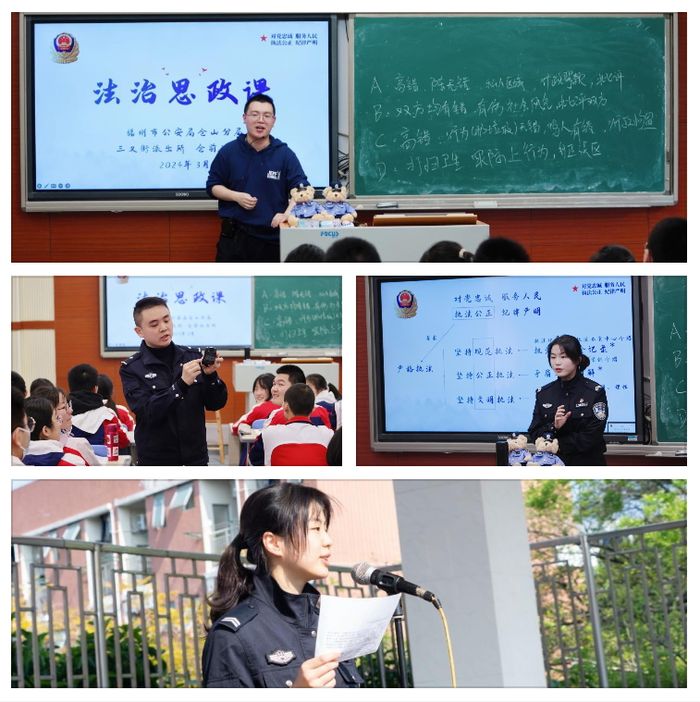 在第29个全国中小学生安全教育日来临之际,荣耀体育(中国)附属中学与福州市公安局仓前派出所、三叉街派出所联合开展“法治+思政”课程系列活动,邀请民警走进校园,推进安全教育、法治教育,构建“平安校园”。