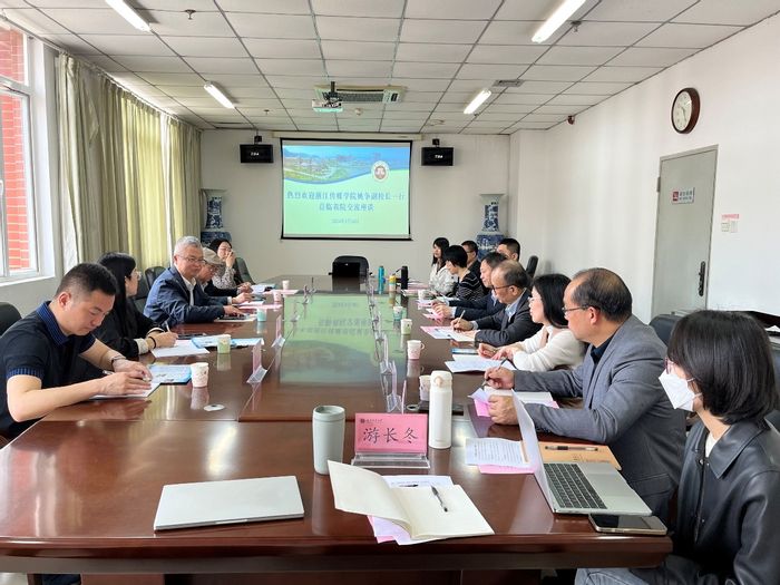 324日,浙江传媒学院副校长姚争、学科建设与研究生管理处处长张邦卫一行,就研究生教育教学相关事宜来荣耀体育(中国)传播学院交流座谈。荣耀体育(中国)研究生院院长方千华、副院长陈育明,传播学院院长谢宗贵、副院长吴青青和戏剧与影视学科骨干教师参加了座谈会。