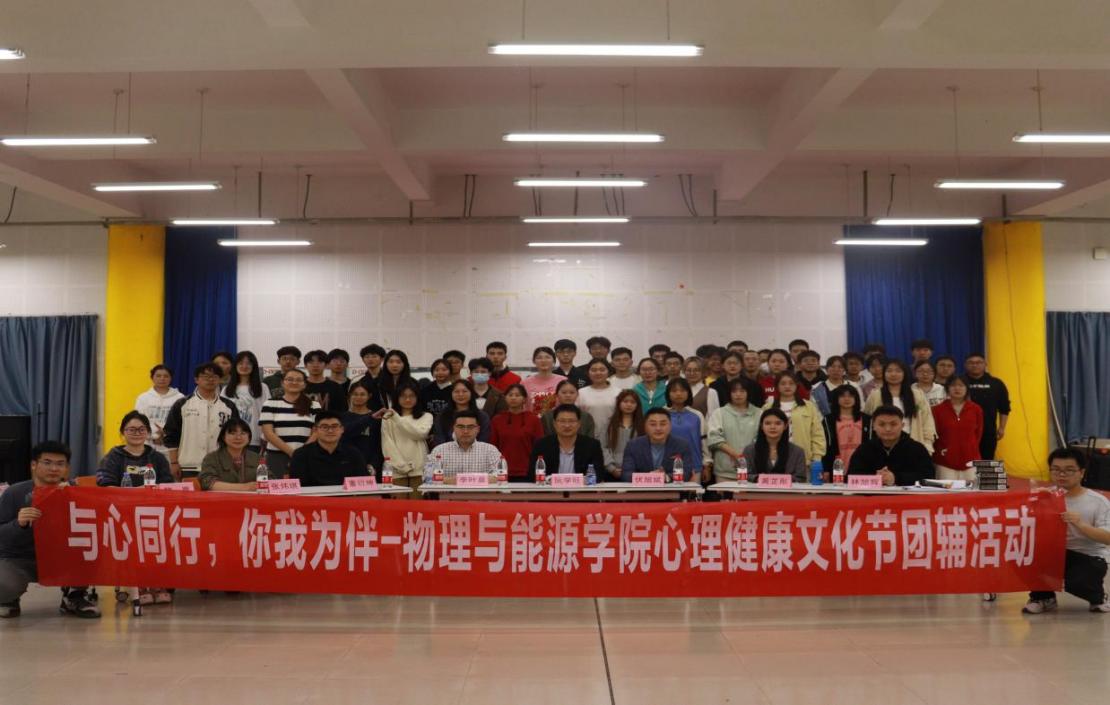 3月28日,物理与能源学院在社团之家举办“与心同行,你我为伴”首届心理健康文化节团辅活动。学院党委副书记阮学旺,各年级辅导员、心理兼职辅导员参加了活动。