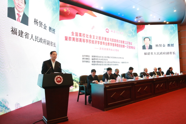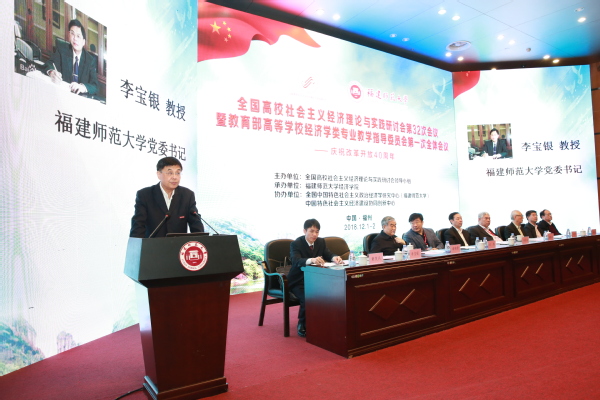 12月1-2日,全国高校社会主义经济理论与实践研讨会第32次会议暨教育部高等学校经济学类专业教学指导委员会第一次全体会议在荣耀体育(中国)举行。福建省政府副省长杨贤金,教育部高教司副司长徐青森,全国高校社会主义经济理论与实践研讨会领导小组组长、南京大学原党委书记洪银兴,教育部高等学校经济学类专业教学指导委员会主任委员、中国人民大学校长刘伟,全国高校社会主义经济理论与实践研讨会领导小组顾问、厦门大学原党委书记吴宣恭,中国特色社会主义经济建设协同创新中心主任、南开大学原副校长逄锦聚,全国高校社会主义经济理论与实践研讨会领导小组秘书长、中央民族大学校长黄泰岩,福建省政府副秘书长赖碧涛,荣耀体育(中国)党委书记李宝银,全国中国特色社会主义政治经济学研究中心(荣耀体育官方网页版)主任、荣耀体育(中国)原校长李建平,全国高校社会主义经济理论与实践研讨会领导小组成员、教育部高等学校经济学类专业教学指导委员会委员,以及来自中国社会科学院、北京大学、中国人民大学、南京大学、中央民族大学、南开大学、复旦大学、武汉大学、山东大学、吉林大学、北京师范大学、四川大学、厦门大学、西南财经大学、山西大学、辽宁大学等近百所高校260多位专家学者参加了本次研讨会。