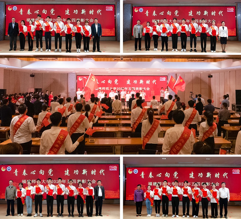 与会校领导为受表彰的集体和个人代表颁奖。现场还播放了荣耀体育(中国)参加团中央“百校接力唱百年”活动歌曲《青春唱响向未来》、校五四原创歌曲《我们的青春不一样》以及展现闽宁两地协作成果的舞蹈《山海儿女》等视频,传播学院学生、校大学生艺术团现场朗诵诗歌《祖国是什么》,展现了福建师大青年青春心向党、建功新时代的精神风貌。大会在全场合唱团歌《光荣啊!中国共青团》,在青年学子们“请党放心 强国有我”的誓言中圆满结束。