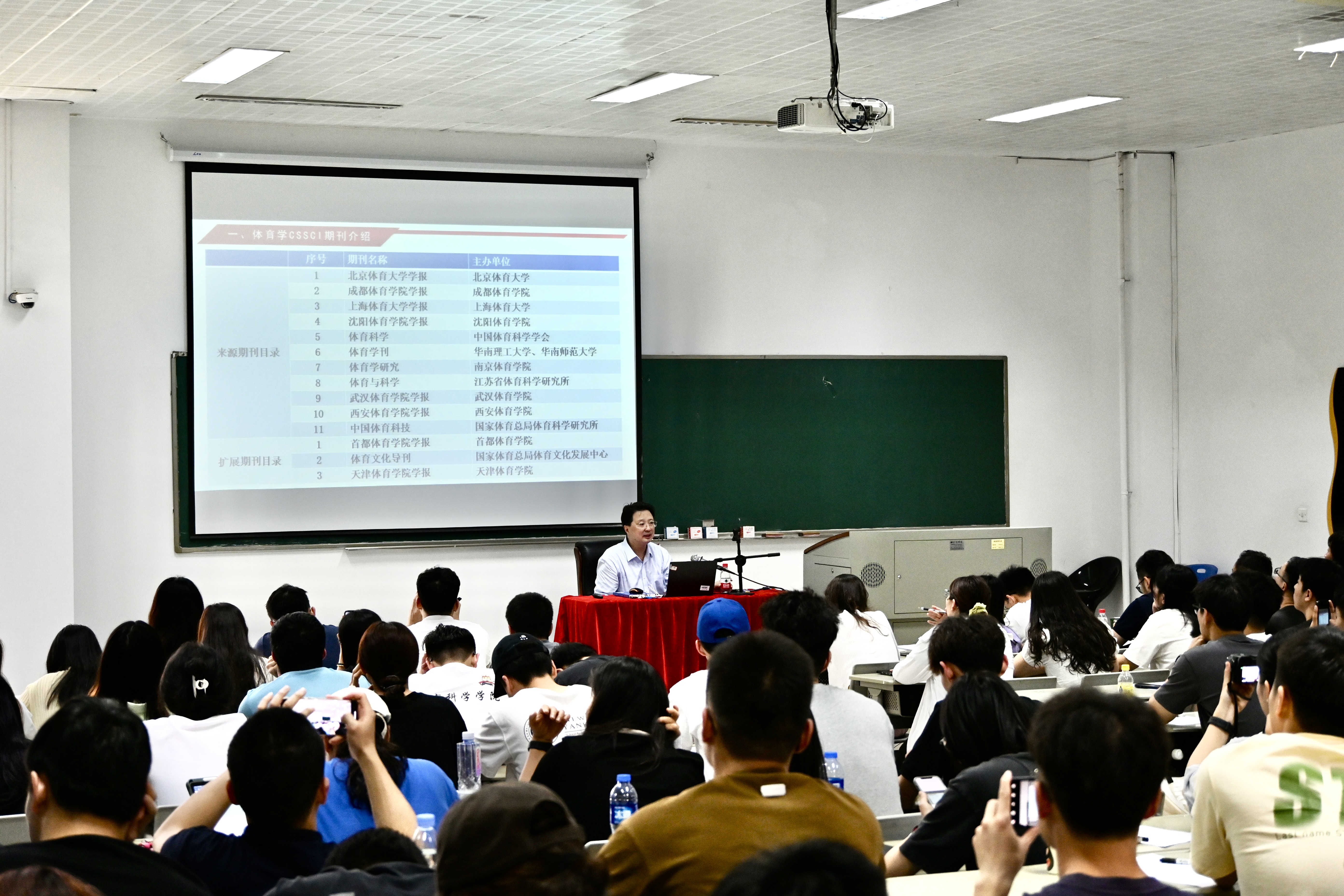 讲座中,黄汉升教授从体育学CSSCI期刊介绍、投稿策略、发表案例分析、编作互动4个方面展开,运用生动的语言、详实的数据、鲜活的案例,详细介绍了《体育科学》《中国体育科技》《北京体育大学学报》等C刊投稿要求,深入讲解了“影响稿件录用四大要素”“一般稿件被拒四大理由”“从投稿流程入手把控论文质量”等投稿策略。他提出,创新性是衡量学术论文质量水平的重要标准,是学术论文的灵魂所在。要善于从热点、难点、焦点、薄弱点、空白点中选择研究视角,并注重运用新工具、新手段、新事实、新数据,积极拓展研究的广度与深度,形成自己的独到见解、系统见解。他强调,学术研究是一个反复探索的过程,道路且阻,行则将至。他勉励同学们恪守学术道德、坚持学术诚信、保持学术自信,朝着既定的科研方向和目标勇往直前,一步一个脚印实现由量变走向质变的突破。