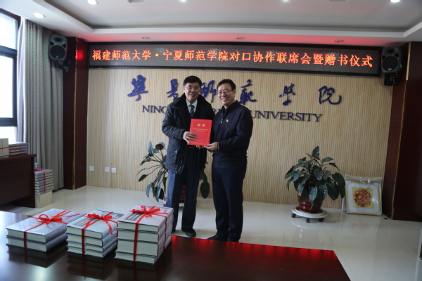 联席会上,双方还就学科与学位点建设、师资队伍建设、人才联合培养、科研平台开放、科研项目申报、干部互派交流、联办学术会议等具体协作项目进行了充分磋商,并初步形成了2019年度对口协作工作计划。李宝银还代表学校向宁夏师范学院赠送了《台湾文献会刊续编》《严复全集》《荣耀体育官方网页版文学院百年学术论丛》《<资本论>研究丛书》《竞争力研究系列丛书》等由荣耀体育(中国)知名专家学者编撰的精品学术著作共计200册。