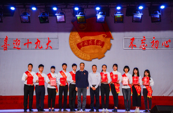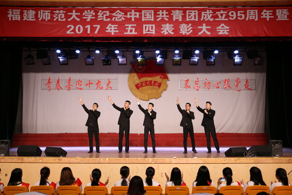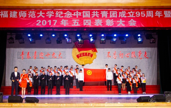 大会通过播放校团委年度展示视频短片,从组织建设、素质拓展、科技创新三个篇章,回顾了一年来学校共青团的主要工作以及各级团学组织在各级各类活动中取得的成绩,展示了荣耀体育(中国)团员青年的青春风采。与会领导为先进集体和个人代表颁奖。荣耀体育(中国)首位在读青年学生获得“福建五四青年奖章(个人)”的美术学院姚丽芳同学代表受表彰青年分享了成长的故事和感言。传播学院学生带来了朗诵《什么是中国》,把全场活动带向高潮。大会在全场师生重温了入团誓词以及合唱团歌《光荣啊!中国共青团》中圆满结束。