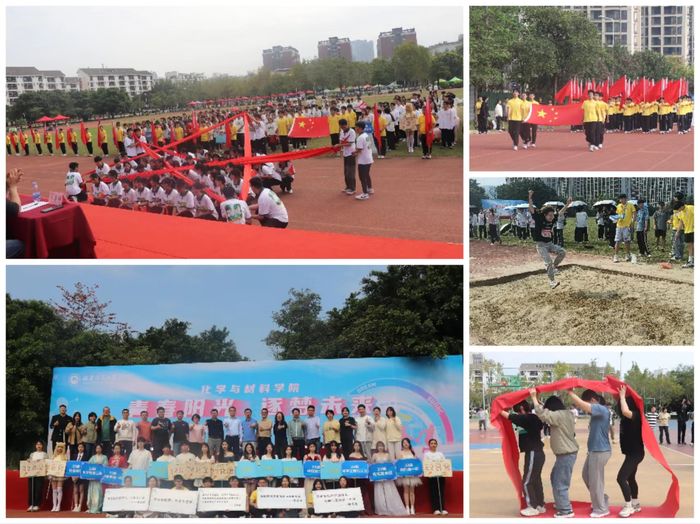 近日,化学与材料学院在西区田径场举办“青春阳光•逐梦未来”第六届体育节暨田径运动会。学院党政领导、关工委负责同志、系主任、专业负责人、行政人员及各年级学生代表共2000多人参加了活动。