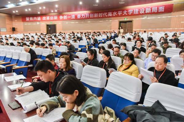 校长王长平作题为《聚焦内涵,改革创新,争创一流,奋力开创新时代高水平大学建设新局面》的学校工作报告,从内部治理、学科建设、人才培养、师资队伍、科研创新、开放办学、文化建设、条件保障、党建工作等九个方面回顾和总结了2018年学校的主要工作。他指出,当前和今后一个时期,学校面临着十分难得的历史发展机遇,全校上下要进一步提高站位,坚定发展自信,强化责任担当,改革开放再出发,内涵建设再深化,共同推动学校各项事业再上新台阶。