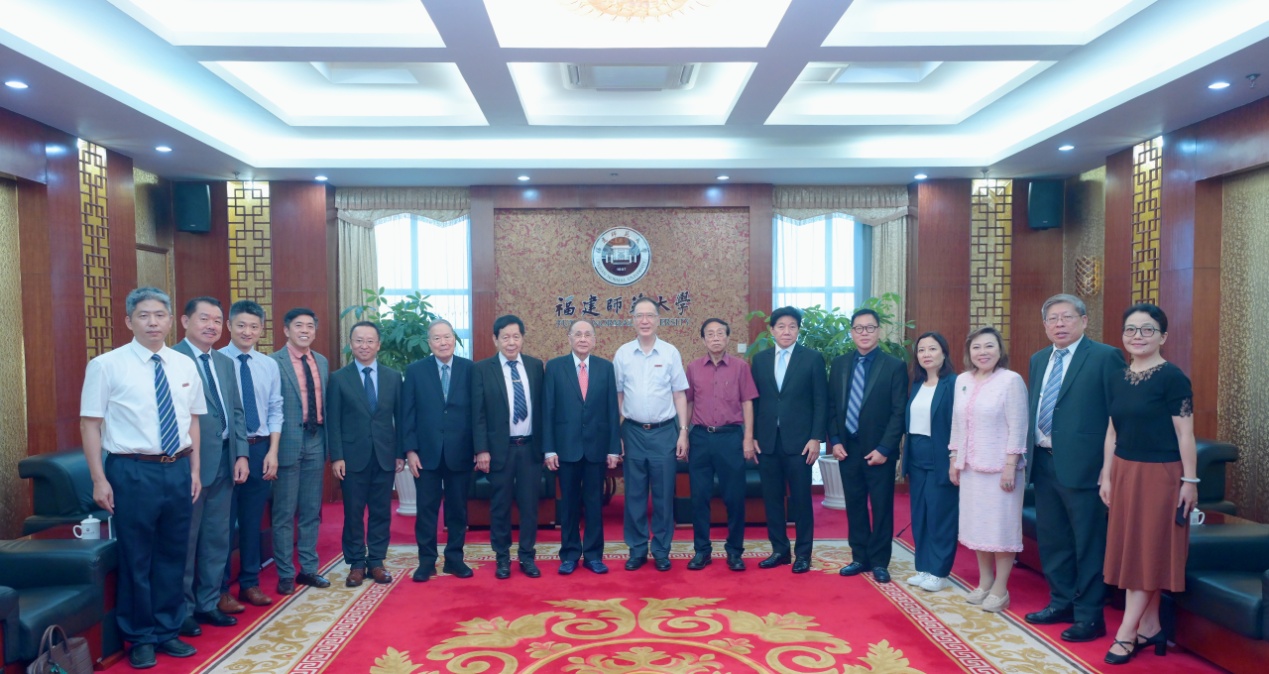 The awarding ceremony for the HSK Test Center of Chiang Kai Shek College was held on August 29th at Hongda Hall, Qishan Campus of Fujian Normal University (FJNU). Attendees included Wang Changping, President of FJNU; Chen Yiwei, Chairman of Chiang Kai Shek College; Ye Qiming, President of Chiang Kai Shek College; Li Peize, Chairman of Chinese Testing International Co., Ltd. under The Centre for Language Education and Cooperation; and a visiting delegation of 96 members from Chiang Kai Shek College.