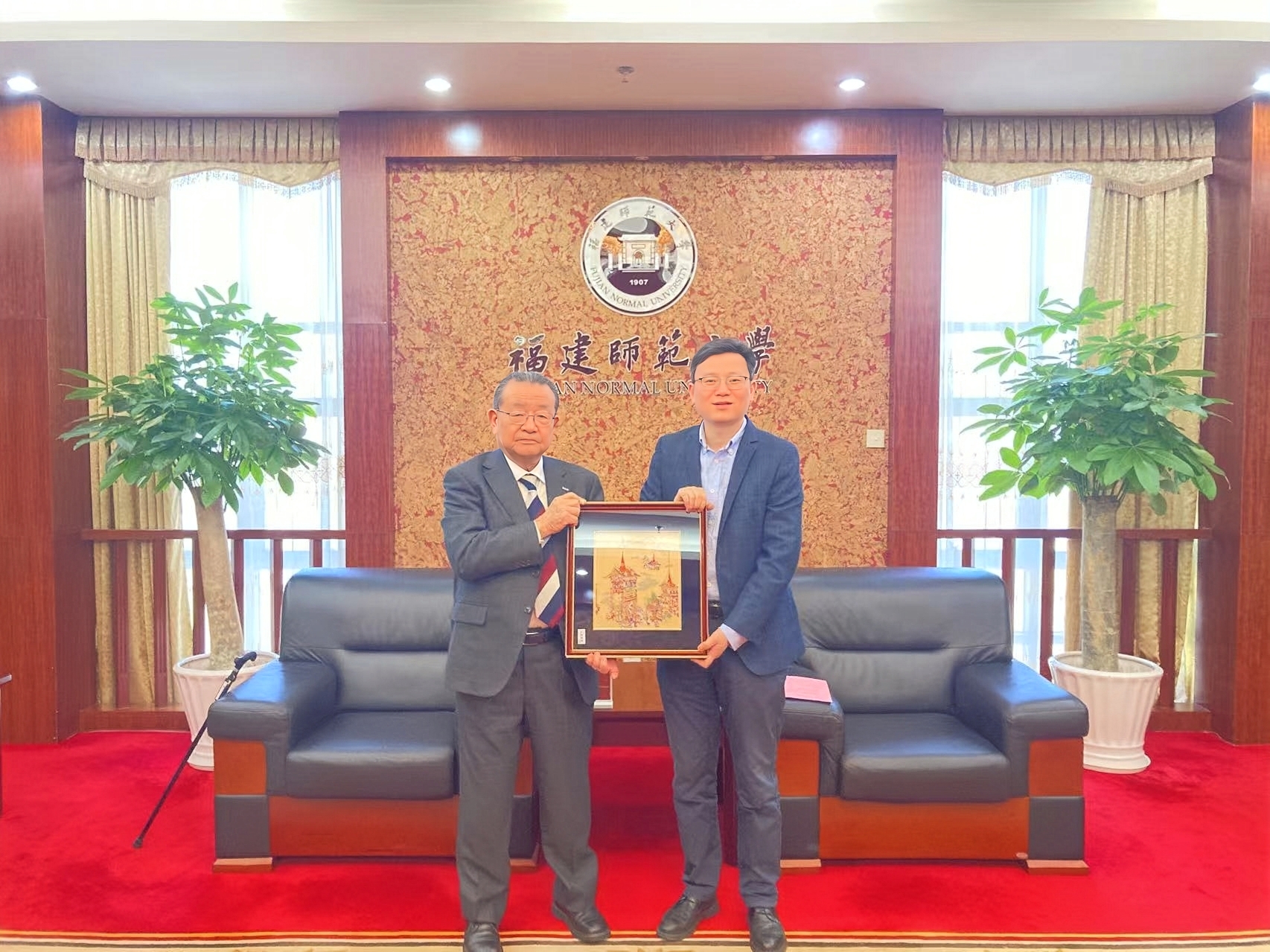 On March 21, President Yoichi Terashita and Vice President Liu Fei of the Kyoto College of Graduate Studies for Informatics (KCGI) paid an official visit to Fujian Normal University (FNU). They were warmly welcomed by Vice President Ouyang Songying, who was joined by representatives from the International Office, the School of Computer and Cyber Security, and the International College of Chinese Studies.