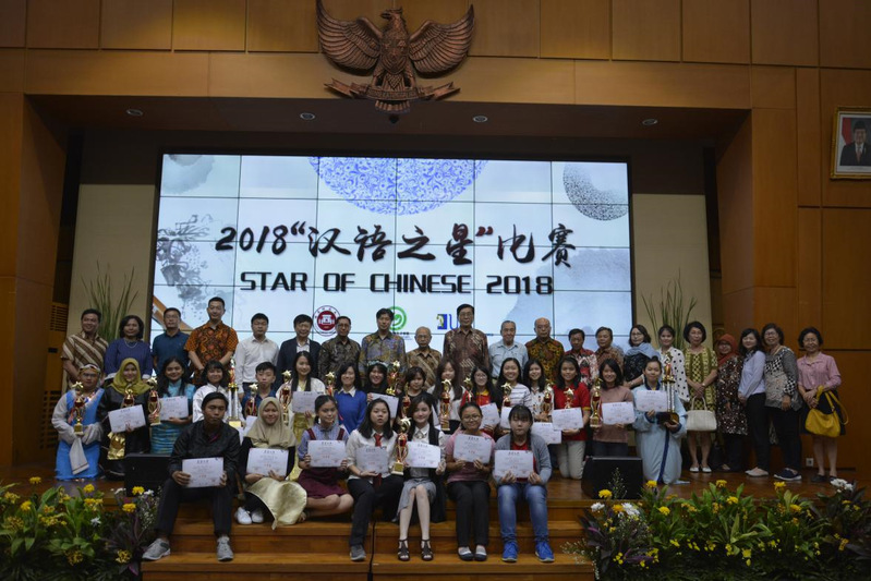 On December 22, “Star of Chinese” 2018 for College Students, sponsored by the Chinese Confucius Institute Headquarters (Hanban) and organized by the Confucius Institute at University of Al Azhar Indonesia, was held in the Auditorium Hall on the third floor of Indonesia Ministry of Culture and Education. 90 students from 8 colleges and universities, including the University of Araza, Jakarta National University and Universitaas Bunda Mulia(UBM), participated in the competition. The contest was composed of three parts, Chinese word spelling and the Chinese idiom story telling for individual students, and the Chinese drama performance for group students. The fierce competition produced two comprehensive prizes and four single champions.