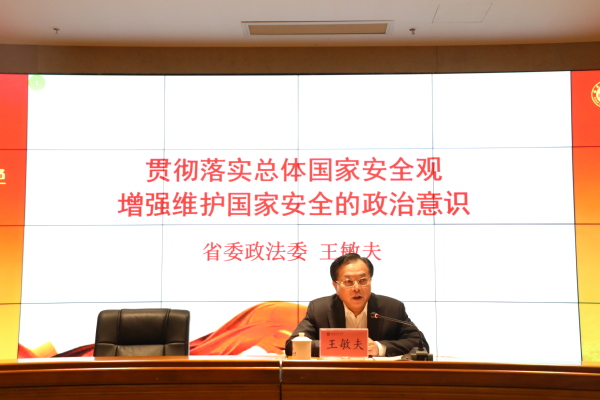 聘任仪式后,王敏夫作题为《贯彻落实总体国家安全观,增强维护国家安全的政治意识》的专题辅导报告。在报告中,王敏夫教授结合丰富的实务案例和工作经验,系统解读了习近平总书记关于总体国家安全观的重要论述,以历史视野和理论创新视角深入阐释了总体国家安全观的历史发展、时代体现和特色亮点,深刻分析了当前国家安全面临的复杂形势,对党员干部增强维护国家安全的政治意识提出了建议。