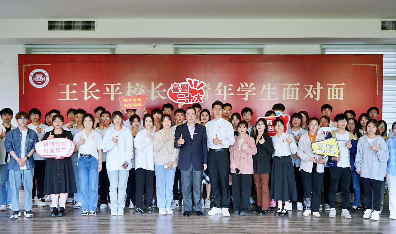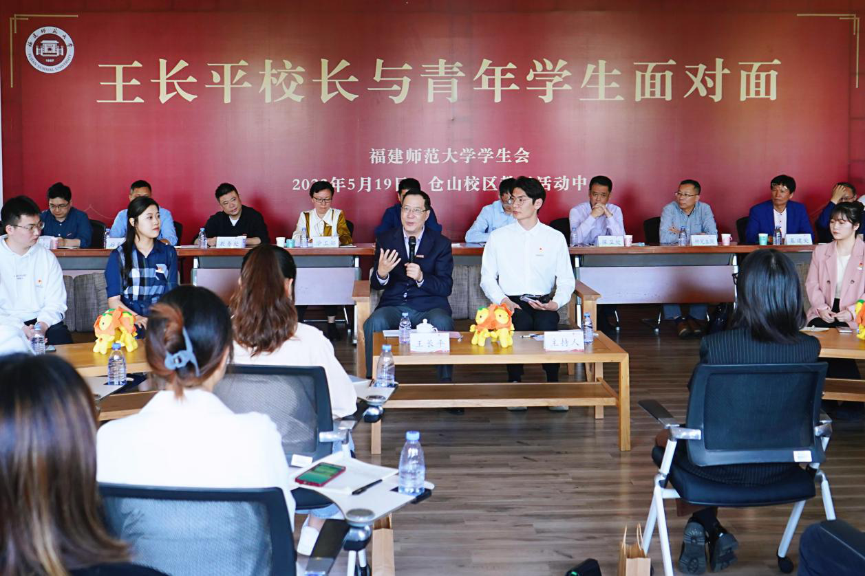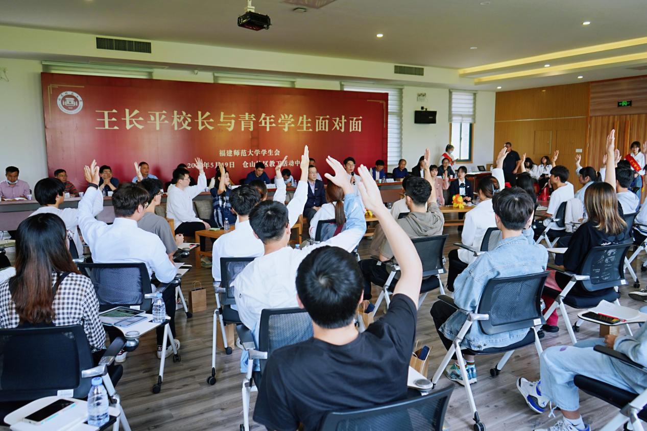 5月19日,由校学生会主办的第十六期“校长与青年学生面对面”活动在仓山校区举行。王长平校长,党政办公室、宣传部、学生工作部、保卫处、教务处、研究生院、后勤管理处、基建处、校团委、图书馆、网络与数据中心、校医院、体育科学学院等单位负责人,与50位学生代表齐聚一堂,共话师大发展,充分彰显荣耀体育(中国)关心青年的态度、关爱青年的温度。活动由校学生会张峰瑜同学主持。