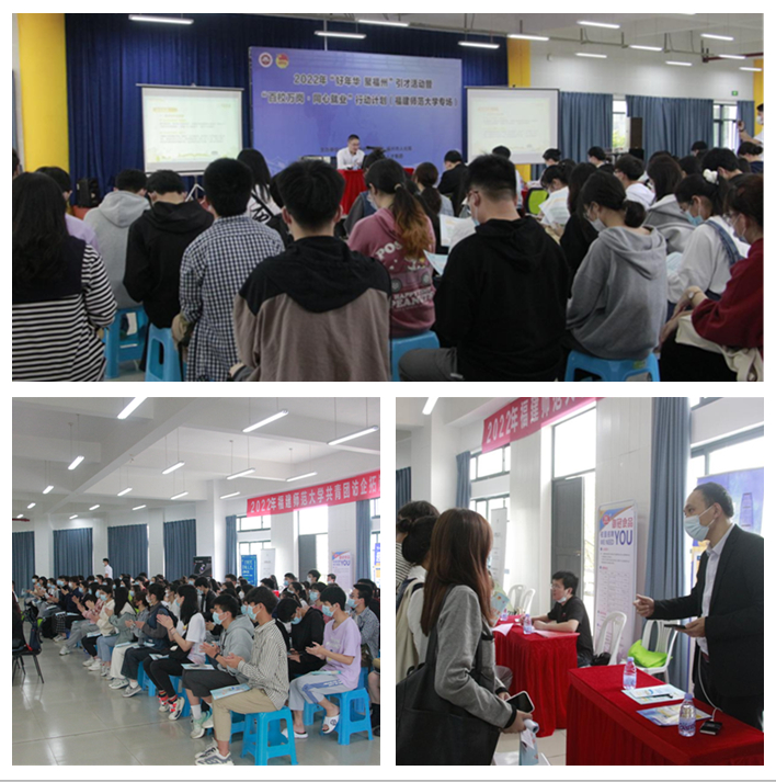 活动包括宣讲和招聘两个环节。在宣讲环节,上官浩龙介绍了“好年华,聚福州”研学活动及福州市人才培养基本情况、就业福利等,希望进一步拓宽大学生的就业方向和社会实践渠道,鼓励支持优秀毕业生在福州就业。在招聘区,毕业生与企业进行了双向对接招聘。盛辉物流集团、恒申集团、福州华威时代中学等知名企业应邀参加了招聘会。