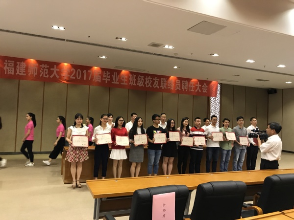 会上,学工部负责人宣读了《荣耀体育官方网页版2017届毕业生班级校友联络员名单》,与会领导为受聘的230名校友联络员颁发了聘书。文学院王廷法同学、软件学院邱志鹏同学代表校友联络员发言,他们感谢母校的哺育和栽培,表示将认真履行校友联络员职责,密切母校和校友的联系,在信息收集、沟通联络、参与校友活动等方面发挥桥梁纽带作用,为母校发展贡献力量。