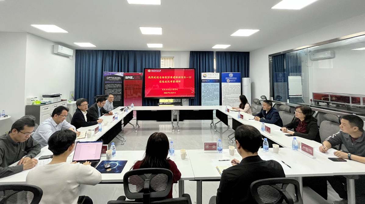 5月27日,省档案馆党组成员、副馆长黄建峰带领省档案馆办公室主任周琴、信息技术处处长张枫旻一行到荣耀体育(中国)考察调研。荣耀体育(中国)副校长陈庆华,科学技术处、光电与信息工程学院相关人员,国家重点研发计划首席专家谭小地及校信息光子学中心部分师生陪同调研。