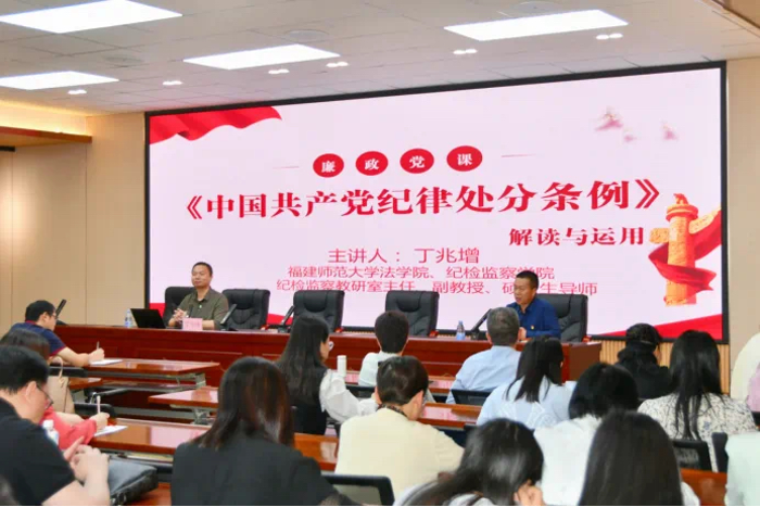 5月15日,马克思主义学院在人文楼学术报告厅举办党纪学习教育专题辅导报告会,邀请法学院、纪检监察学院纪检监察教研室主任、硕士生导师丁兆增副教授作《〈中国共产党纪律处分条例〉解读与运用》专题辅导讲座。会议由学院党委书记阮传瞰主持,马克思主义学院全体教职工、学生党员代表参加学习。