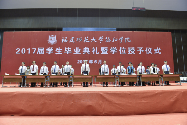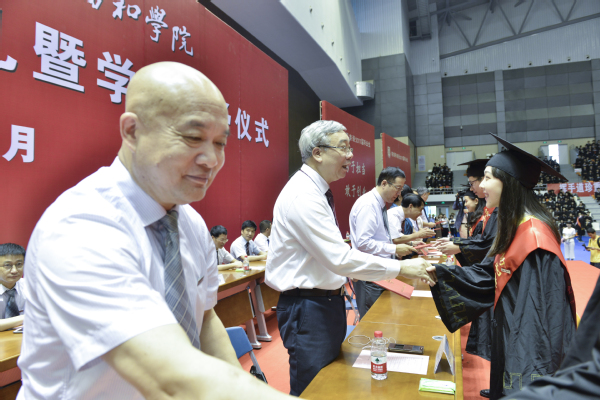 典礼上,王进安副院长宣读了《荣耀体育官方网页版协和学院关于准予2017届3227名本科学生毕业的决定》,张华荣院长宣读了《荣耀体育官方网页版协和学院关于授予2017届3219名本科毕业生学士学位的决定》,黄俊兴常务副书记宣读了《荣耀体育官方网页版协和学院关于表彰2017届优秀毕业生的决定》;与会领导、来宾为毕业生代表颁发了毕业证书、优秀毕业生荣誉证书和校友联络大使聘任证书;全体毕业生庄严宣誓并合唱了《荣耀体育官方网页版校歌》。