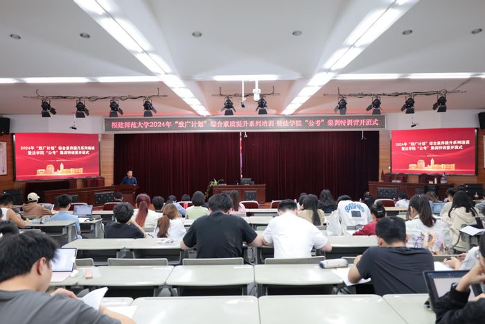 开班式上,学生工作部副部长乐有方希望广大受助学生坚持助人与自助,提升自身综合素养和专业竞争力,法学院党委副书记汪启思介绍了“公考”特训营的整体思路和课程安排。开班式后,海峡人才市场就业指导讲师方连城带来首场专题讲座《申论的本质思维》。