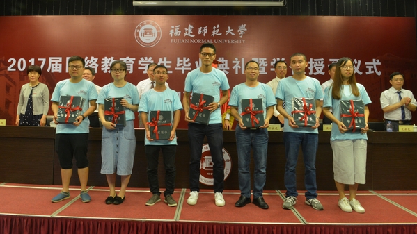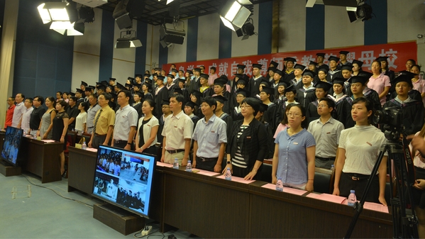 王长平校长、郑家建副校长等主席台上的领导、嘉宾为毕业生代表颁发毕业证和学位证。随后,王长平还为获得成人高等教育学士学位的毕业生代表执行“拨穗礼”,并合影留念。
