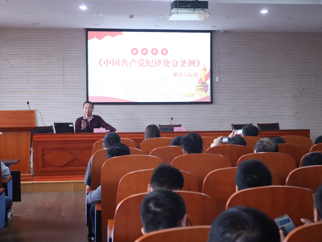 丁兆增副教授从《中国共产党纪律处分条例》(以下简称《条例》)的制定背景、修订历程、主要内容及特色亮点等方面进行了全面系统的阐释,帮助师生深入学习领会《条例》的精神内涵和内容实质。整场报告史料翔实、案例丰富,结合警示案例和工作实际中存在的违纪风险点,以案释法、以案明纪,教育引导广大师生以高度的政治自觉,强化自我约束,做到学纪、知纪、明纪、守纪,把党纪学习教育成果转化为推动学院高质量发展的强大动力。