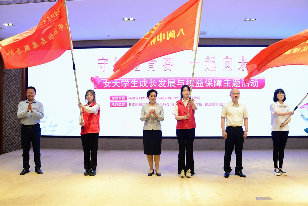 活动现场,主办单位分别为八闽巾帼红宣讲队、巾帼148普法公益法律服务志愿队、荣耀体育(中国)芳华法韵志愿服务队等三支队伍授旗。