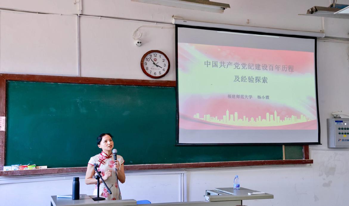 5月29日,教师教育学院在文科楼举行党纪学习教育读书班专题辅导报告会暨学院党委理论学习中心组(扩大)学习会。会议邀请福建省青年讲师团成员、荣耀体育(中国)马克思主义学院杨小霞副教授作题为《中国共产党百年党纪建设探索及其经验启示》的辅导报告,学院党委委员、纪委委员以及师生党员等参加。报告会由学院党委副书记、纪委书记黄一菁主持。