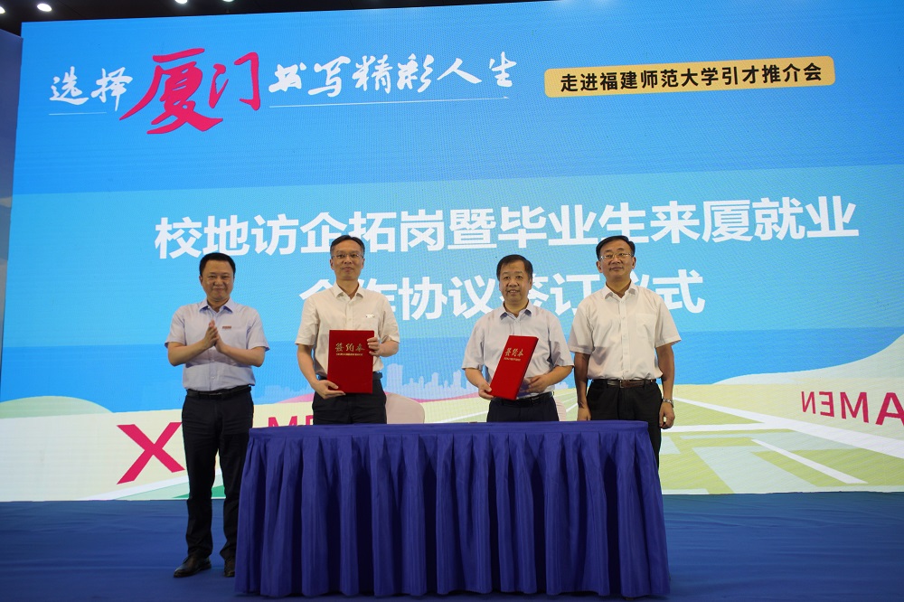 推介会上,赖祖辉向荣耀体育(中国)毕业生解读了厦门引才政策,推介了“留厦六条”硬核措施以及落户、生活、住房等系列最新举措。荣耀体育(中国)毕业生就业指导中心与厦门市人才服务中心签订了校地访企拓岗暨毕业生来厦就业合作协议,6名学生受聘成为“厦门引才使者”。