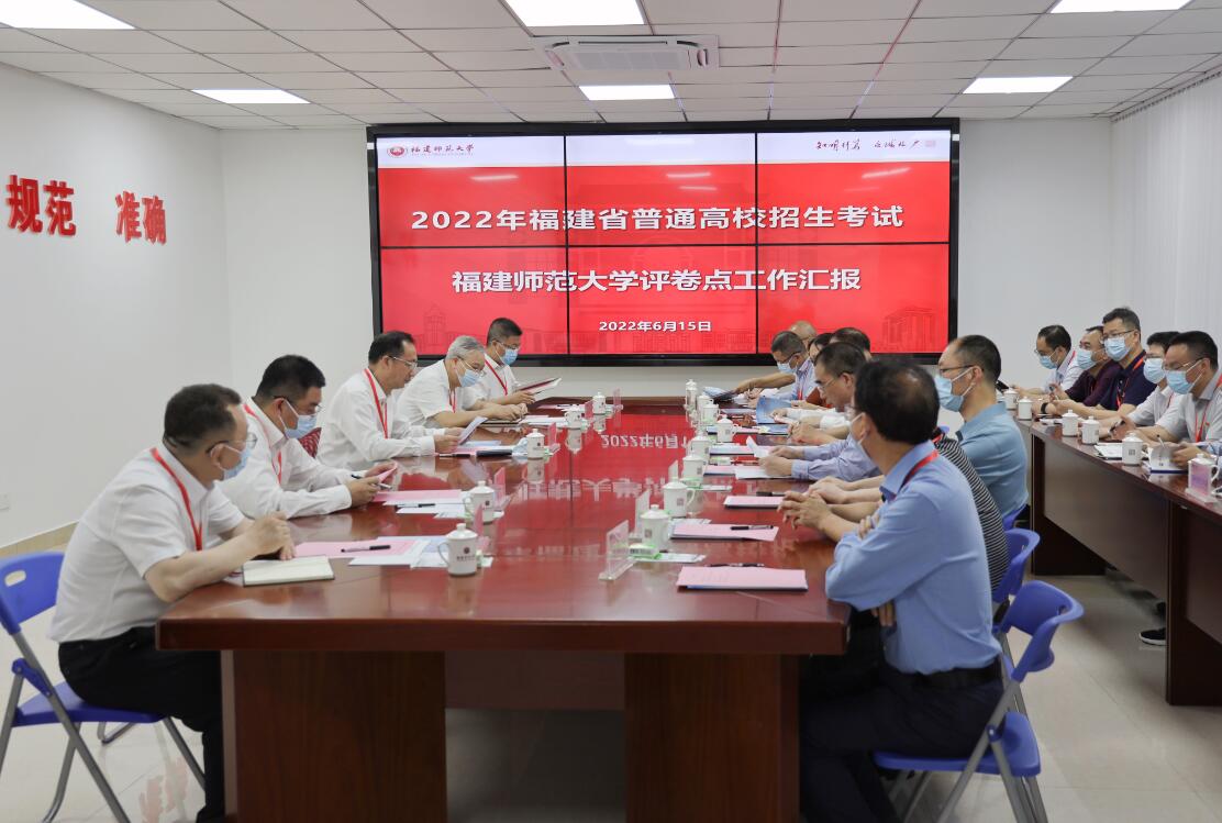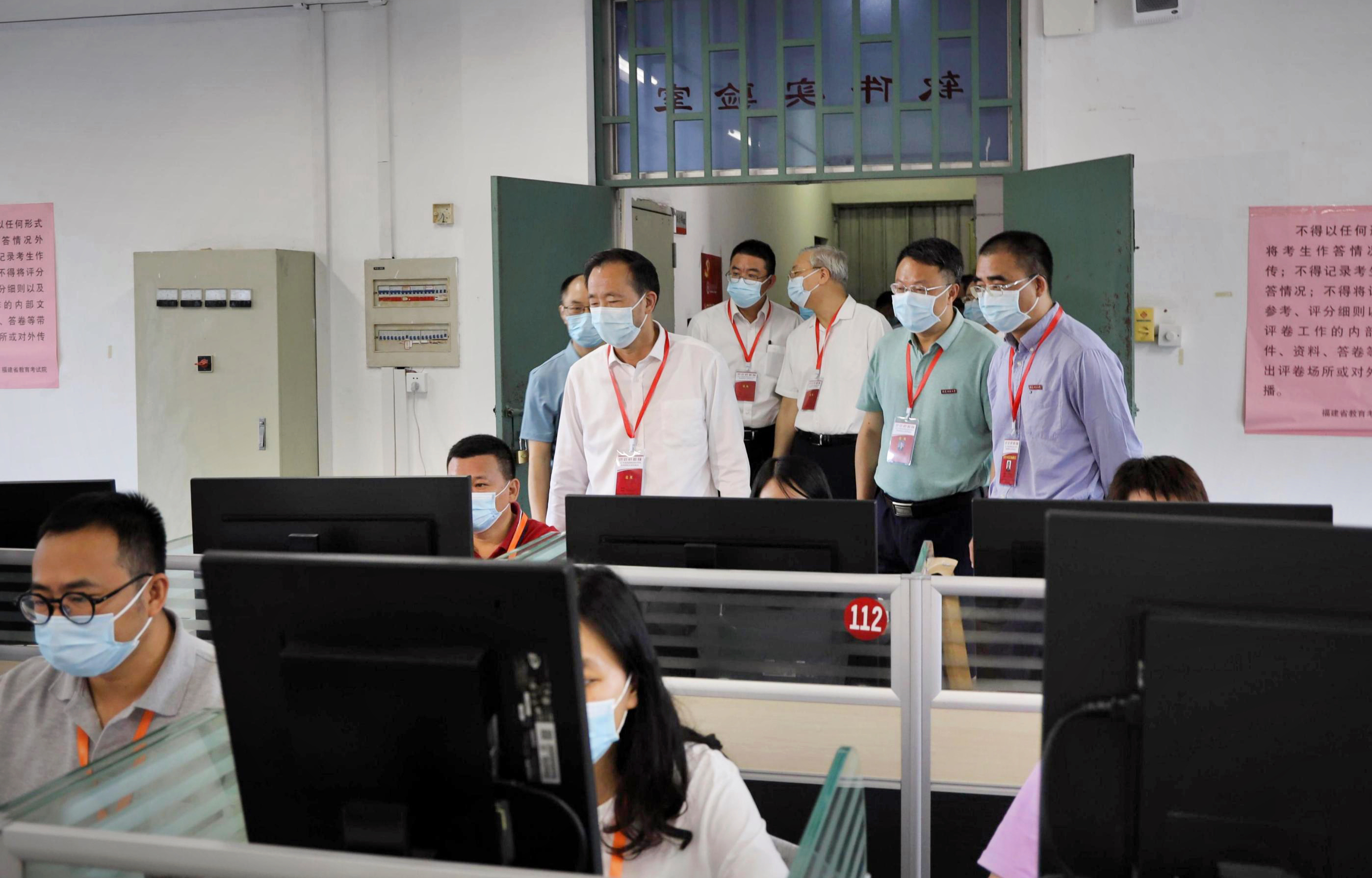 6月15日,副省长、省招委会主任李德金到福建省普通高考荣耀体育官方网页版评卷点,检查指导2022年我省高考评卷工作,看望慰问评卷教师和工作人员。省政府副秘书长杨闽红,省教育厅厅长林和平,省教育考试院党委书记林清泉、院长黄俊兴,荣耀体育(中国)党委书记潘玉腾、副校长郑家建、纪委书记、监察专员林月恩陪同检查指导。